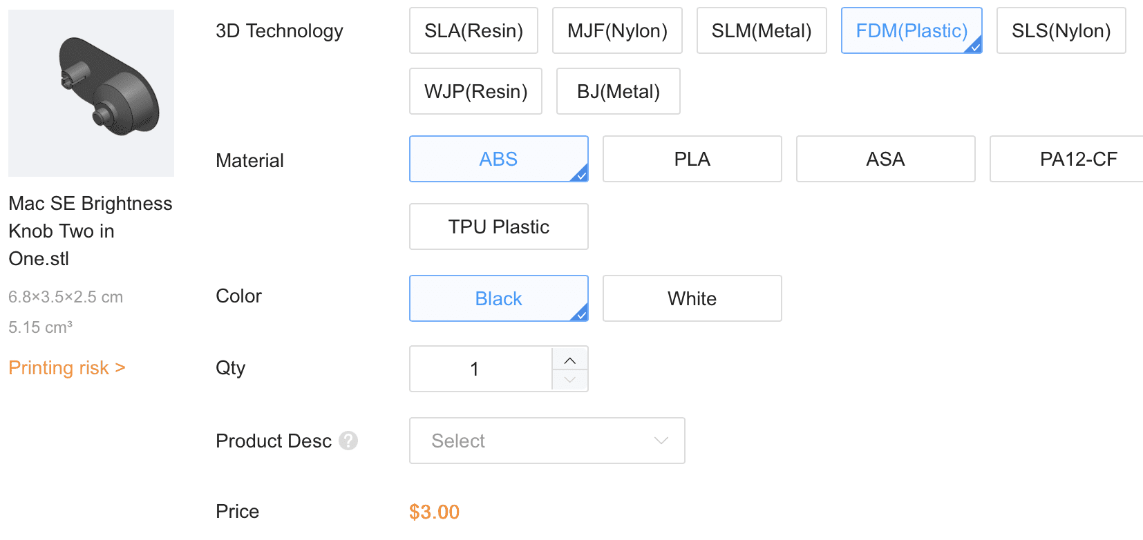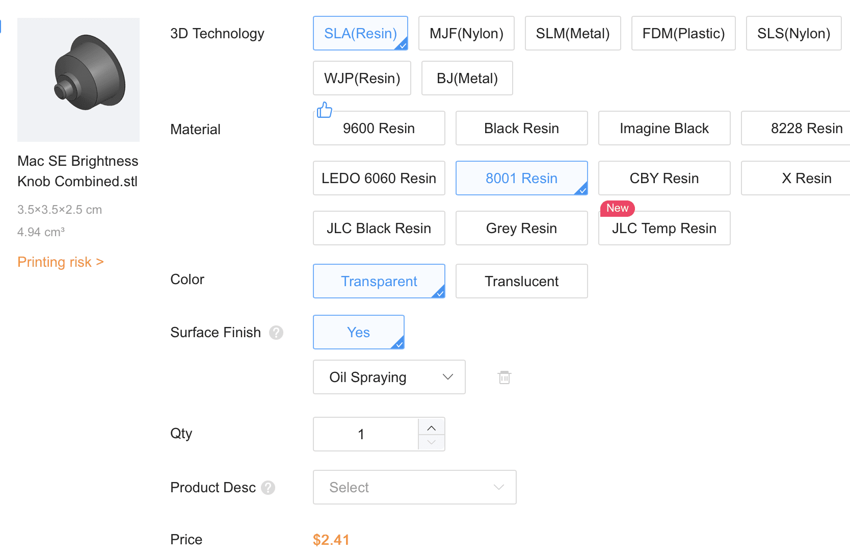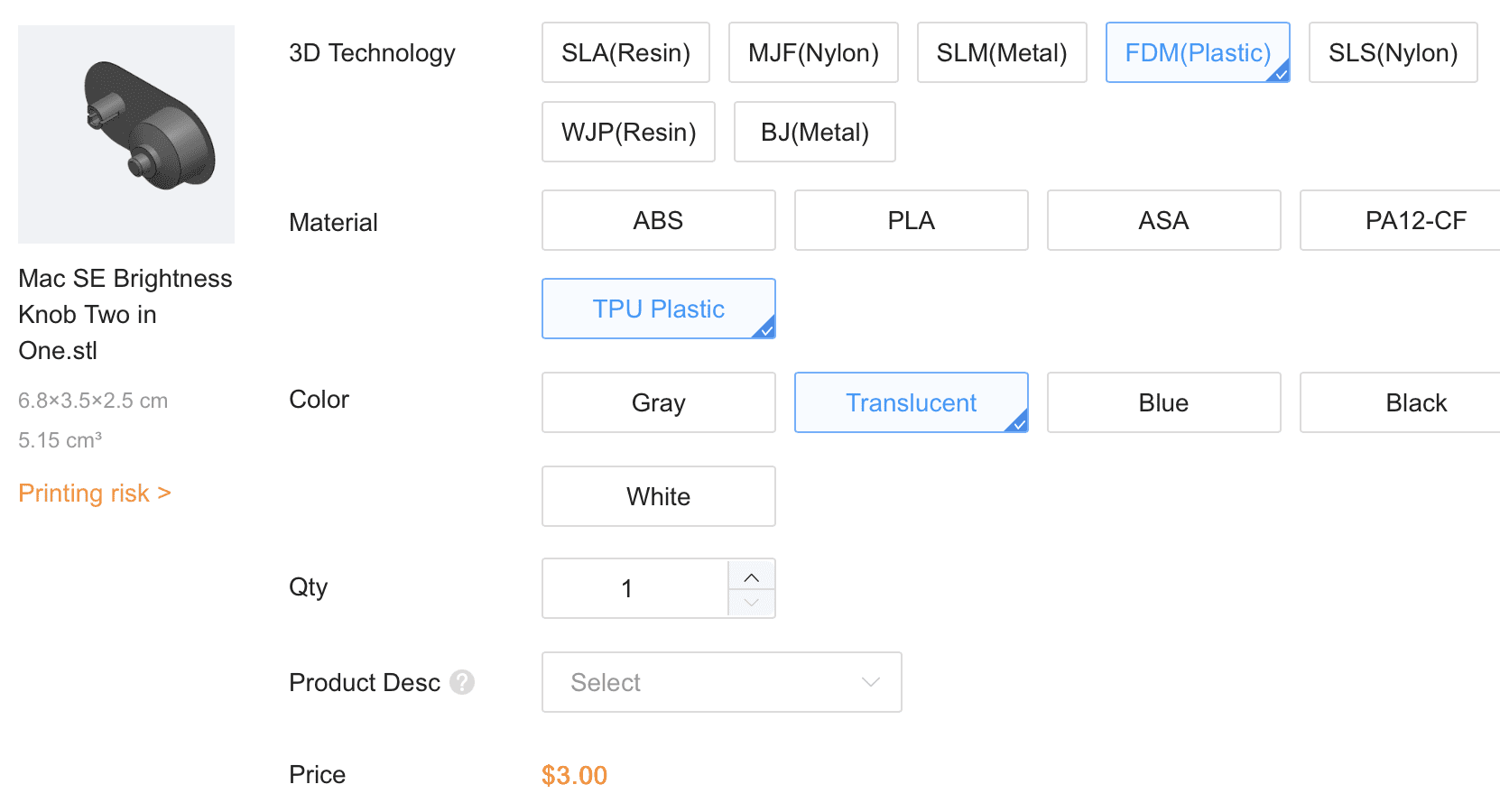 CLEAR BRIGHTNESS KNOB, the photo above has a semi-transparent appearance similar to what I've had printed at JLC3DP in what they call