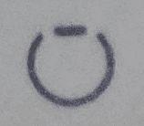 On the original series of Apple Desktop Mouse models (before Apple Desktop Mouse II), the underside label includes a circle with a flat spot to indicate which mouse model has low-power usage.