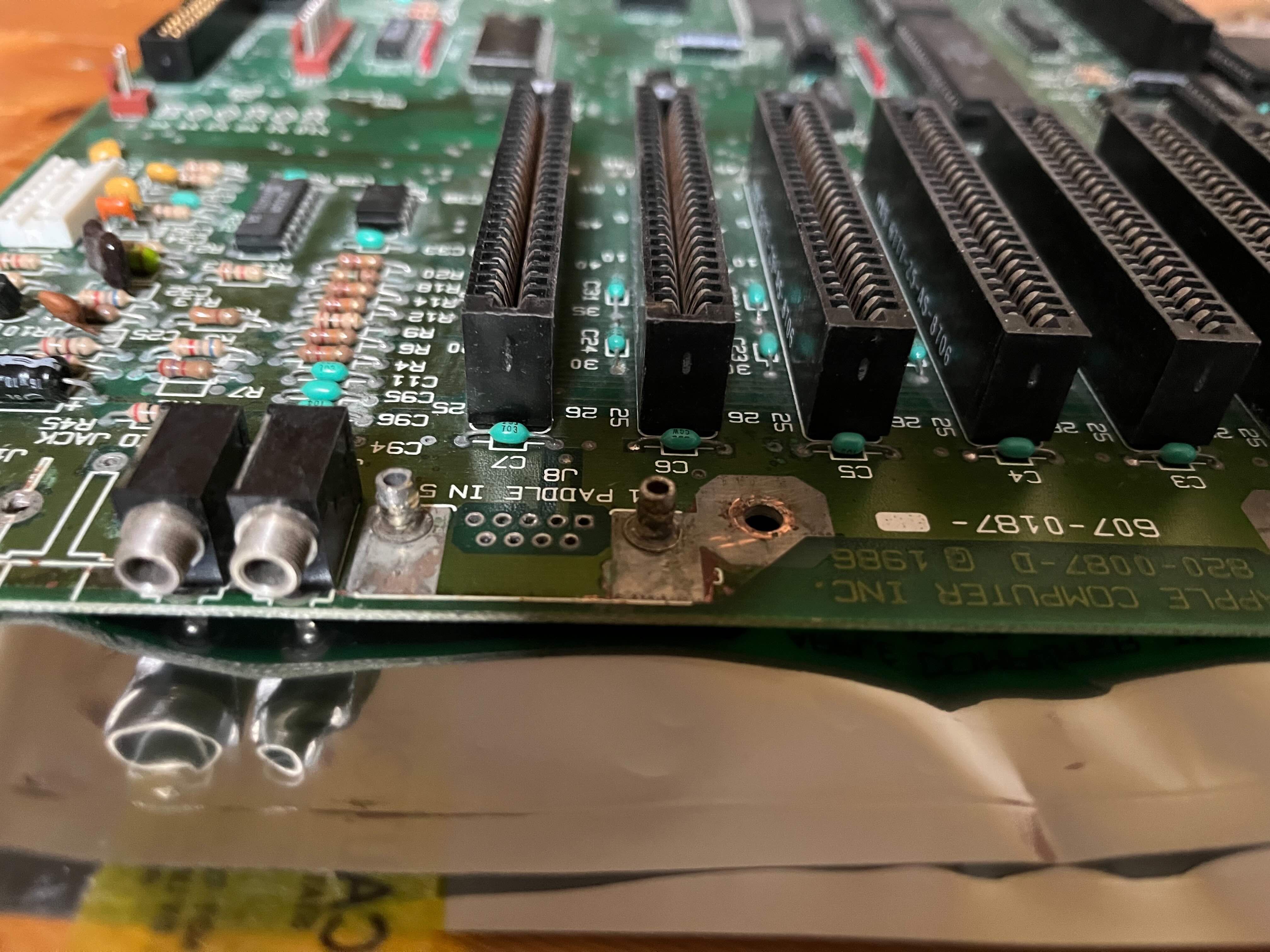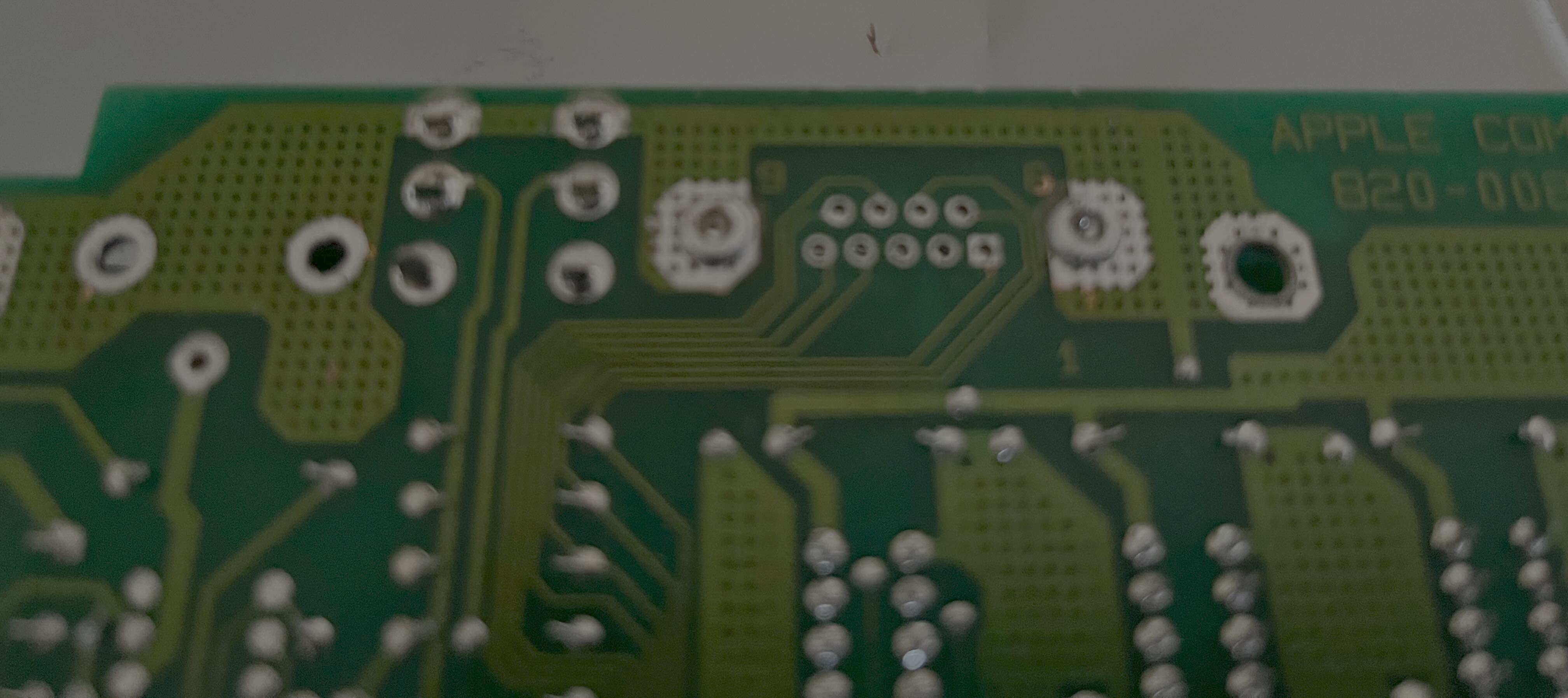I recently aquired a NTSC Apple IIe, which after inspection showed a bit more corrosion than expected (on the bottom shield as well as on the video and joystick connector). Desoldering the video connector and - most - of the DSub connectors pin went flawless - until I tried to free the mounting points of the Dsub connector.