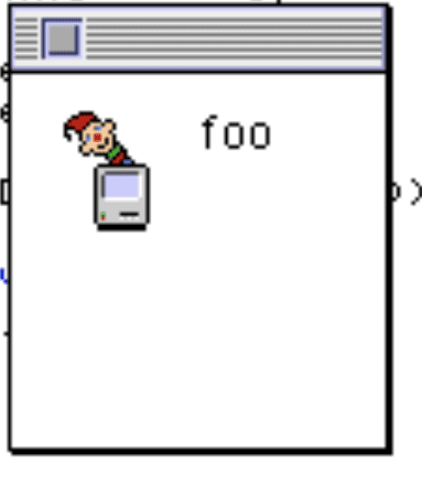 C:pascal OSErr MakeIconCache (Handle *theCache, ProcPtr GetAnIcon, Ptr yourDataPtr ) = {0x303C, 0x0604, 0xABC9}; pascal OSErr LoadIconCache (const Rect *theRect, short alignment, long transform, Handle theSuite ) = {0x303C, 0x0606, 0xABC9}; pascal OSErr PlotIconSuite (const Rect *theRect, short alignment, short transform, Handle theSuite) = {0x303C, 0x0501, 0xABC9}; pascal OSErr DisposeIconSuite (Handle theSuite, Boolean disposeData) = {0x303C, 0x0302, 0xABC9}; pascal OSErr PlotIconMethod (const Rect *r, short alignment, short transform, ProcPtr method, Ptr data) = {0x303C, 0x0805, 0xABC9}; pascal Handle IconGetter(ResType type, Ptr data) { DTPBRec pb; short s, k; Handle h; short vRefNum; // open desktop db Check(GetVol(NULL, &vRefNum)); pb.ioNamePtr = NULL; pb.ioVRefNum = vRefNum; Check(PBDTOpenInform(&pb)); // get icon info switch (type) { case 'ICN#': s = kLargeIconSize; k = kLargeIcon; break; case 'icl4': s = kLarge4BitIconSize; k = kLarge4BitIcon; break; case 'icl8': s = kLarge8BitIconSize; k = kLarge8BitIcon; break; case 'ics#': s = kSmallIconSize; k = kSmallIcon; break; case 'ics4': s = kSmall4BitIconSize; k = kSmall4BitIcon; break; case 'ics8': s = kSmall8BitIconSize; k = kSmall8BitIcon; break; default: DebugStr("\punknown icon type"); } h = NewHandle(s); HLock(h); // just keep it locked til done // pb.ioDTRefNum = ... already populated pb.ioDTReqCount = s; pb.ioDTBuffer = *h; pb.ioIconType = k; pb.ioTagInfo = 0; pb.ioFileCreator = 'RSED'; // get icon for ResEdit pb.ioFileType = 'APPL'; // (only works for apps on indicated vRefNum!) Check(PBDTGetIconSync(&pb)); return h; } void main() { WindowPtr w; const Rect r = { 100, 100, 200, 200}; const Rect iconRect = { 10, 10, 42, 42 }; InitGraf(&thePort); InitFonts(); InitMenus(); InitWindows(); InitDialogs(NULL); w = NewCWindow(NULL, &r, "\p", true, documentProc, NULL, true, 0L); SetPort(w); Check( PlotIconMethod(&iconRect, 0, 0, IconGetter, NULL) ); while (!Button()) ; }