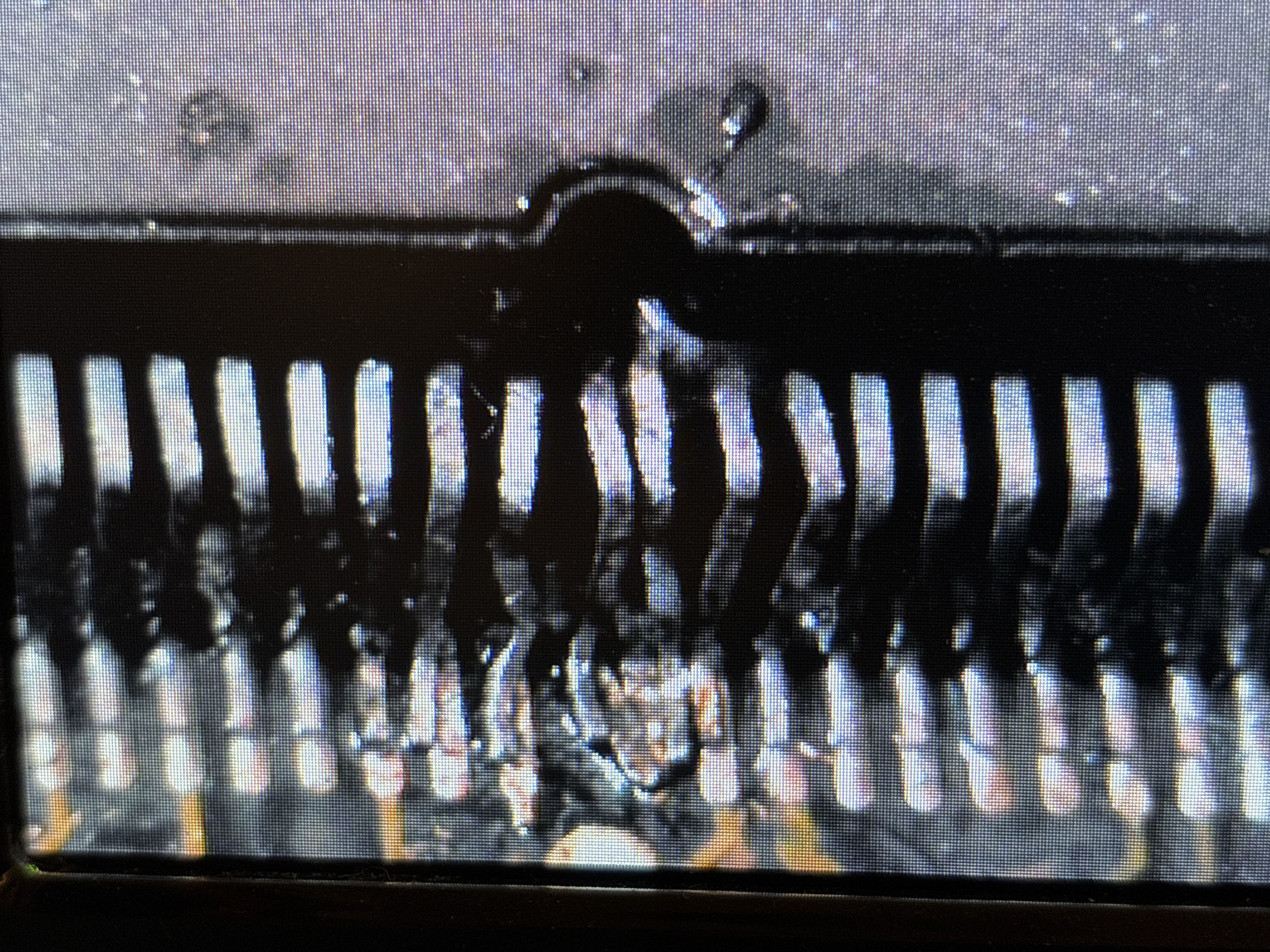 There’s about 7 or 8 bent pins, some in the middle are wildly out of whack. It’s also pulled up at least 2 pads from the PCB.