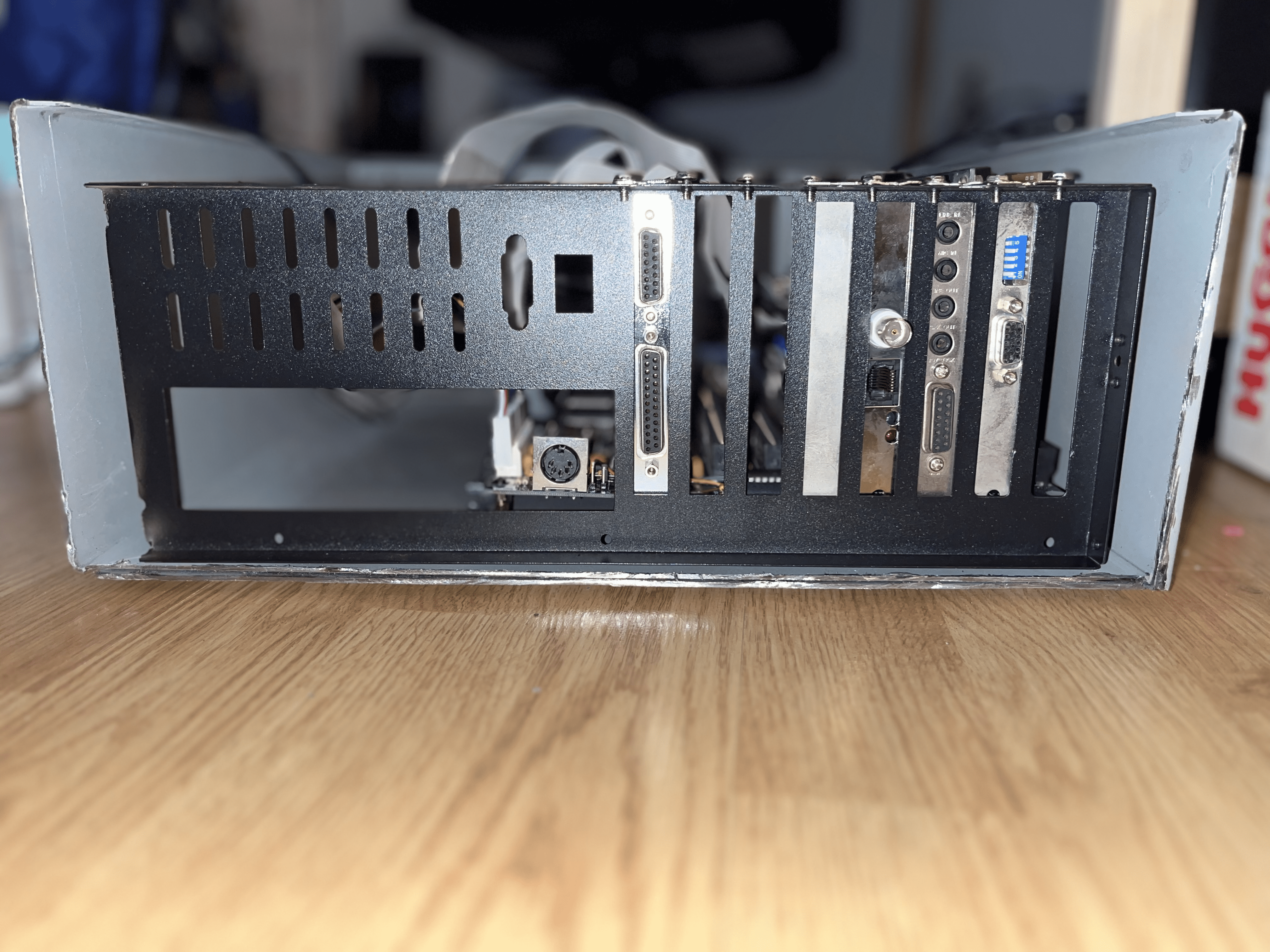 only had to slice the PSU side off for this build, but then random bits of metal and a ton of JB weld to fill in all the gaps. printed a cover for the IO shield area as thats where i put the sff power supply. The case is actually a 15x15x7 junction box that had to be cut with a grinder![]()
