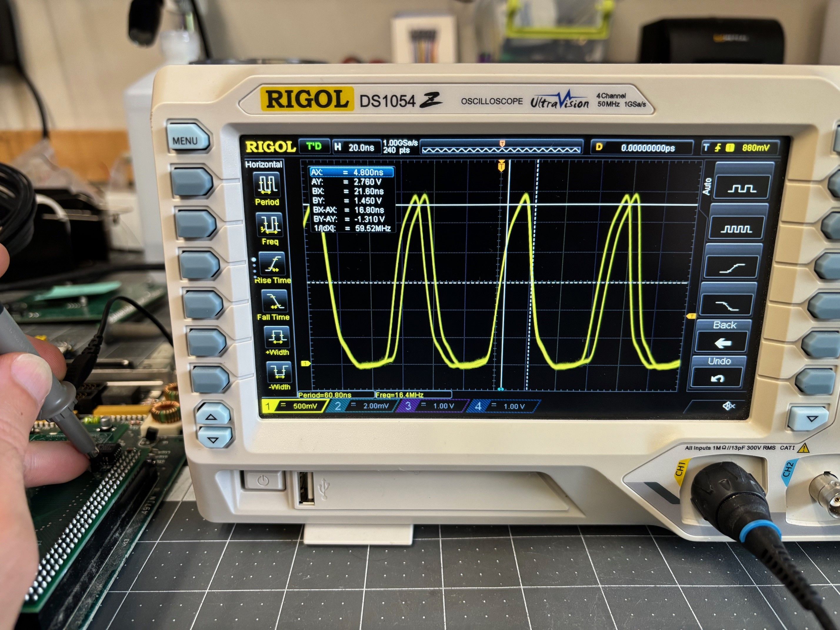I'm using the Performer 2.2.1 extension. I have not tried other versions, as I thought this was the latest and greatest. At first I was thinking my troubles were due to a clock integrity issue. I probed both the SE's internal 16MHz and the 16MHz generated by the GAL. While the GAL clock signal isn't as clean as the signal generated from the SE, that machine still functions when I let the GAL generate the 16MHz clock for the accelerator's CPU. According to Bolle, I shouldn't be worried about the GAL clock, as it's inherently not as clean due to GAL propagation delay.