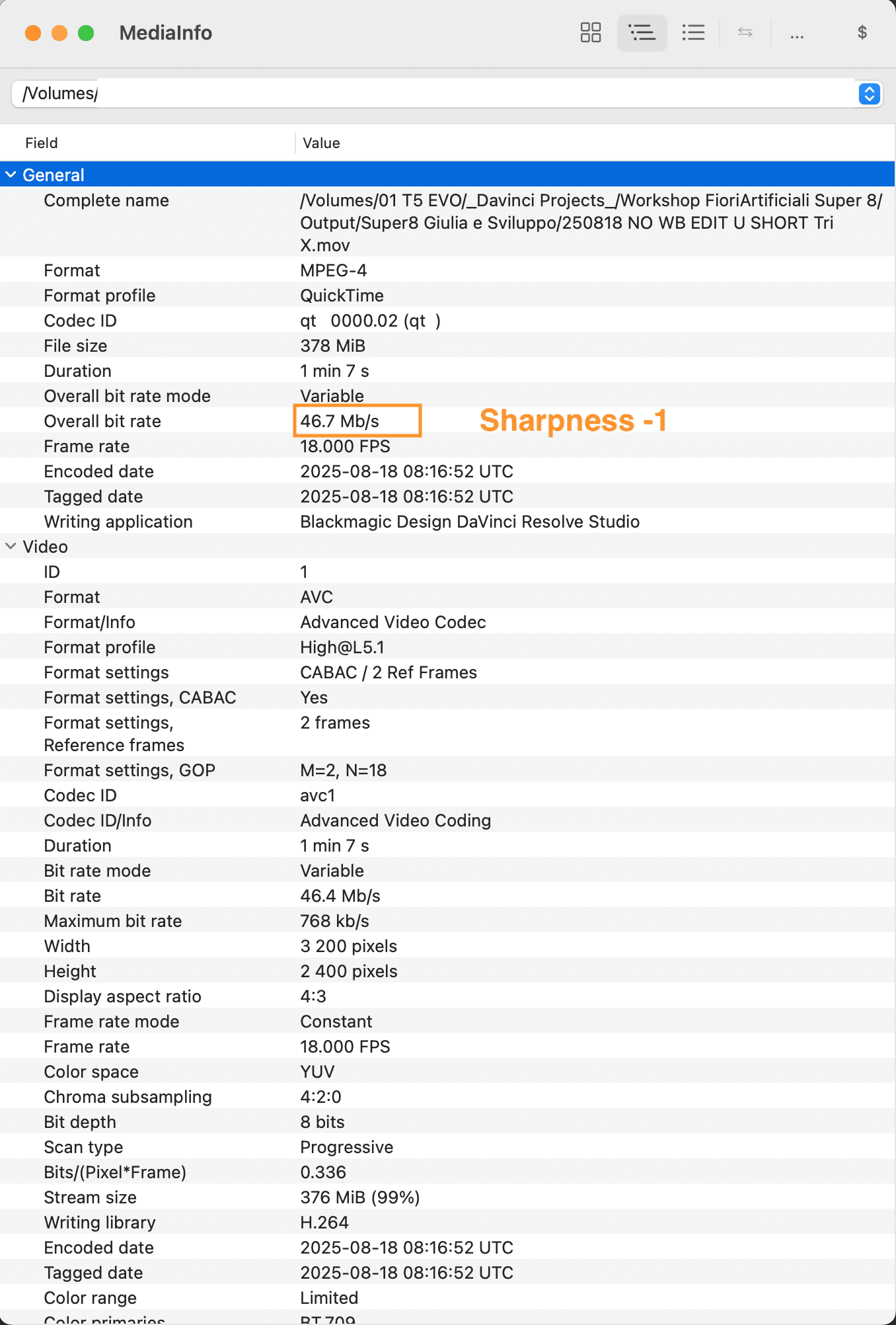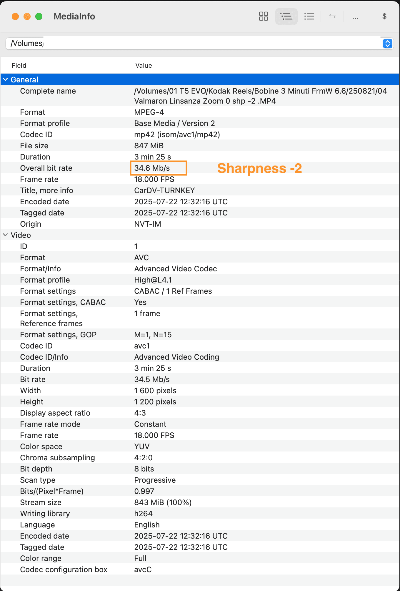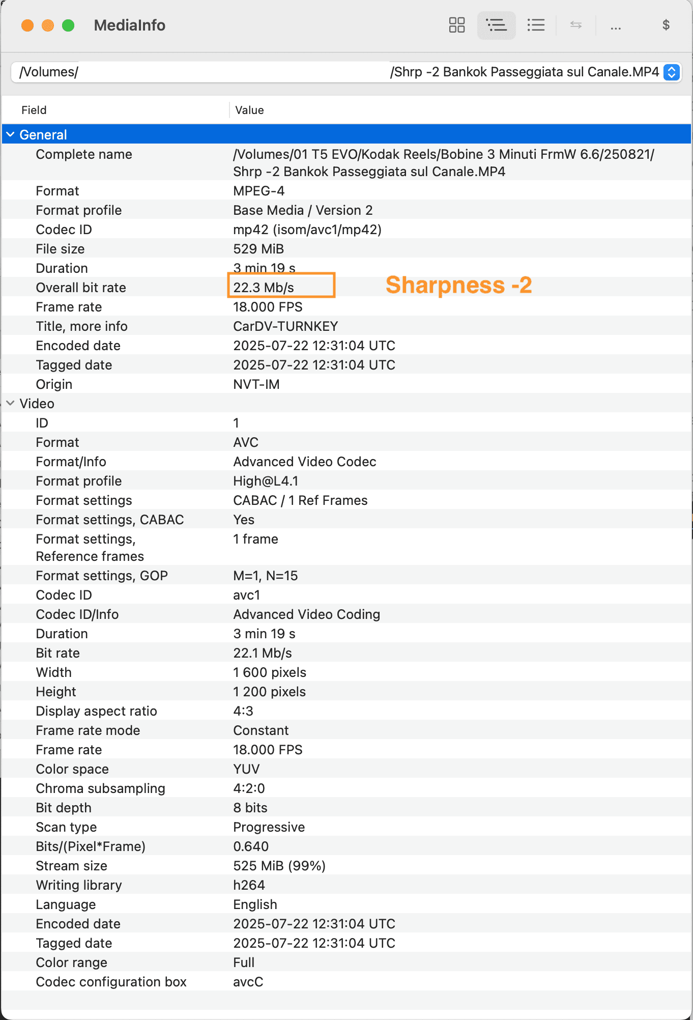 My attention was captured by the high bitrate that the previous clip had eq. 46.7 Mbit/s, well above the 35 Mbit/s 0dan0 set.