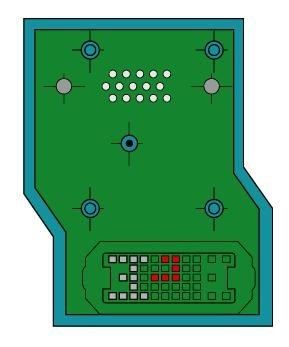 I wasn't sure if the machine pin headers would be a good fit, because the closest diameter I could get for that would be small enough to fit the holes on the pcb was 0.02in (0.51mm). The original pins on the HDI-45 male connector was closer to .6mm. So I wanted to take two of my test PCBs and use both type of connectors and see which one fit better. The machine pin headers weren't terribly cheap, so I only fit the minimum to get it to seat properly.