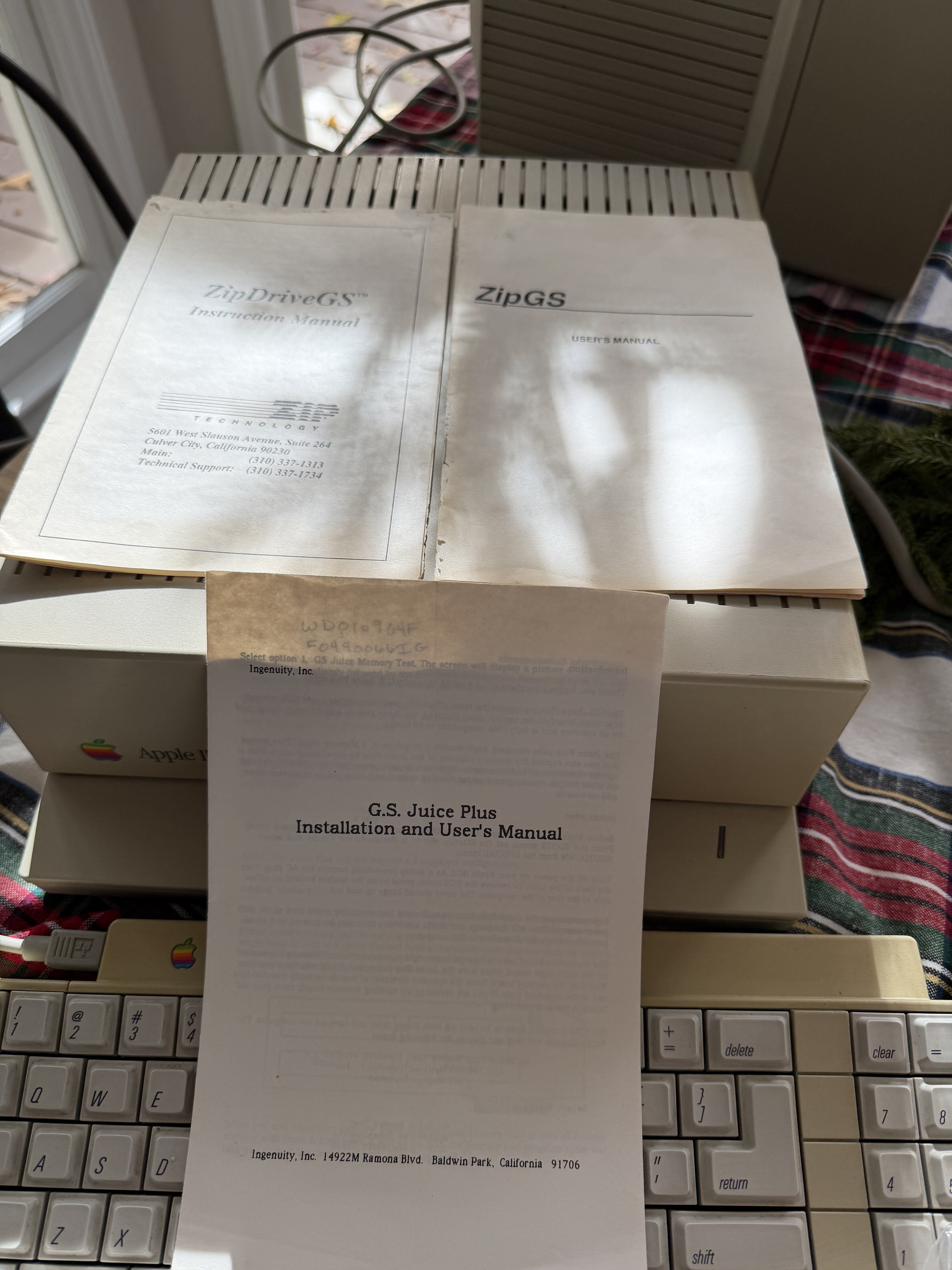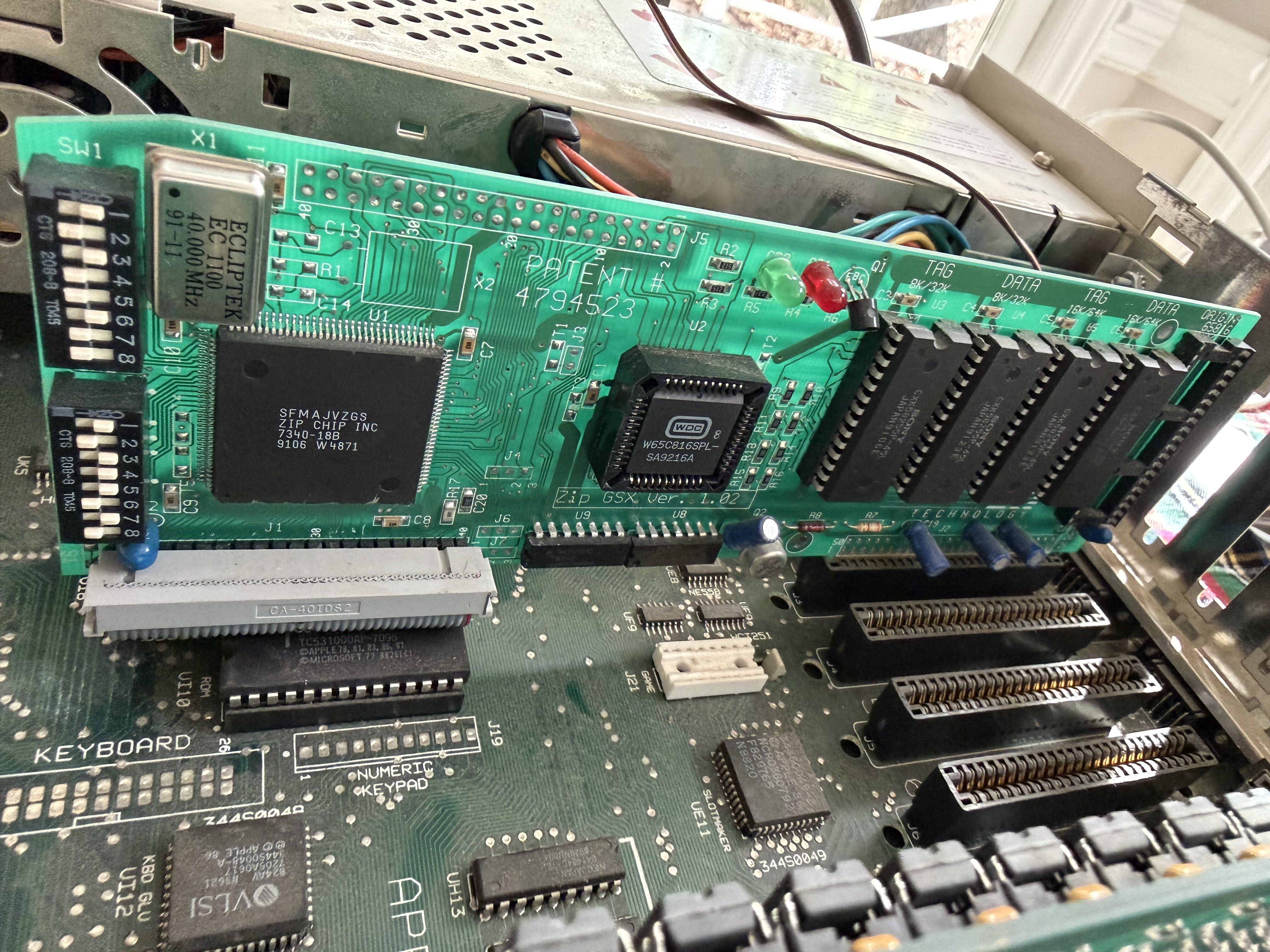 The other good news is that it had some very cool cars and accessories. Inside was a 4MB GS Juice memory expansion card. It also has a ZipGS GSX accelerator card. Looks like it plugs into an expansion slot and then a ribbon cable plugs into the cpu socket.