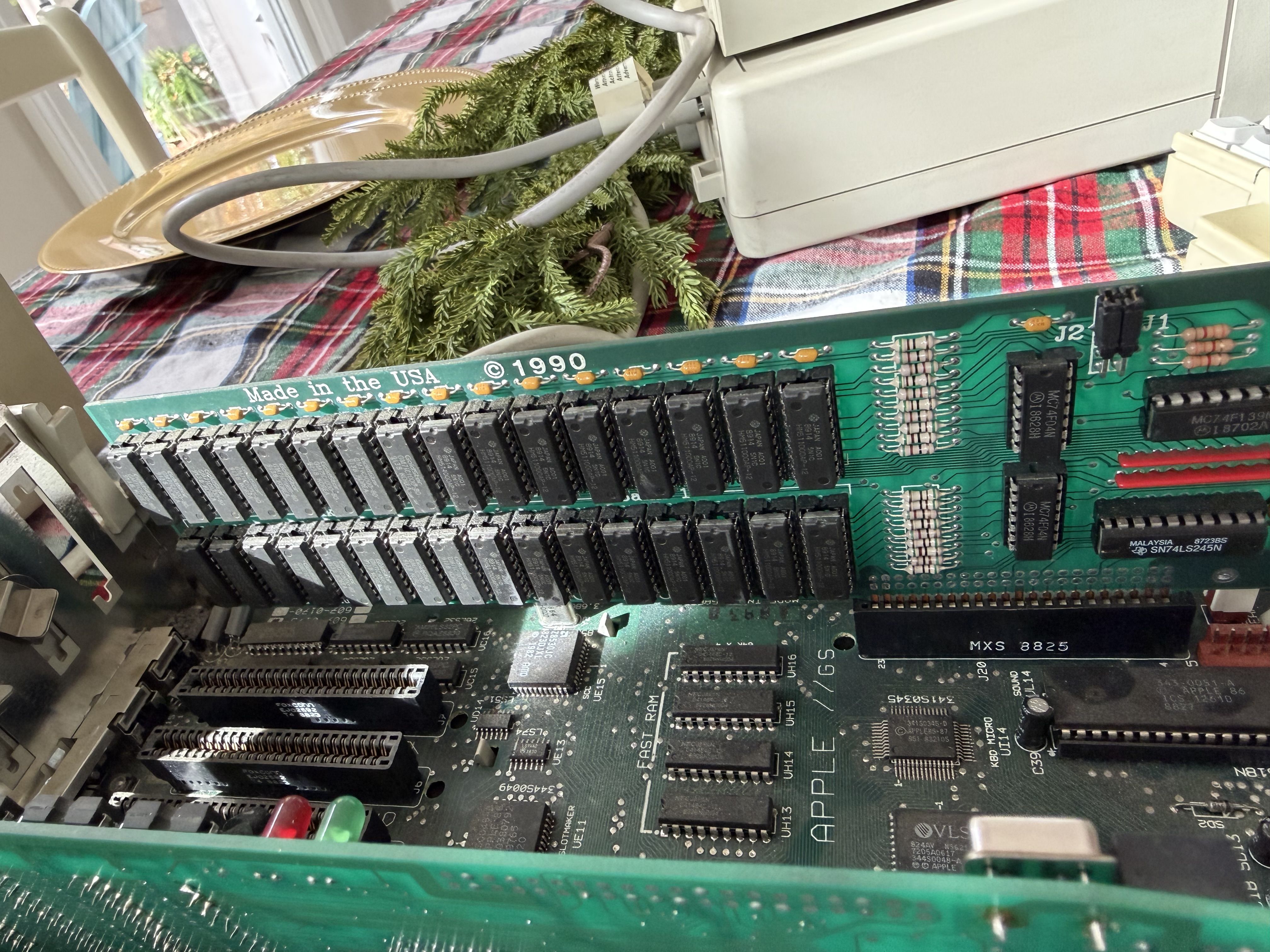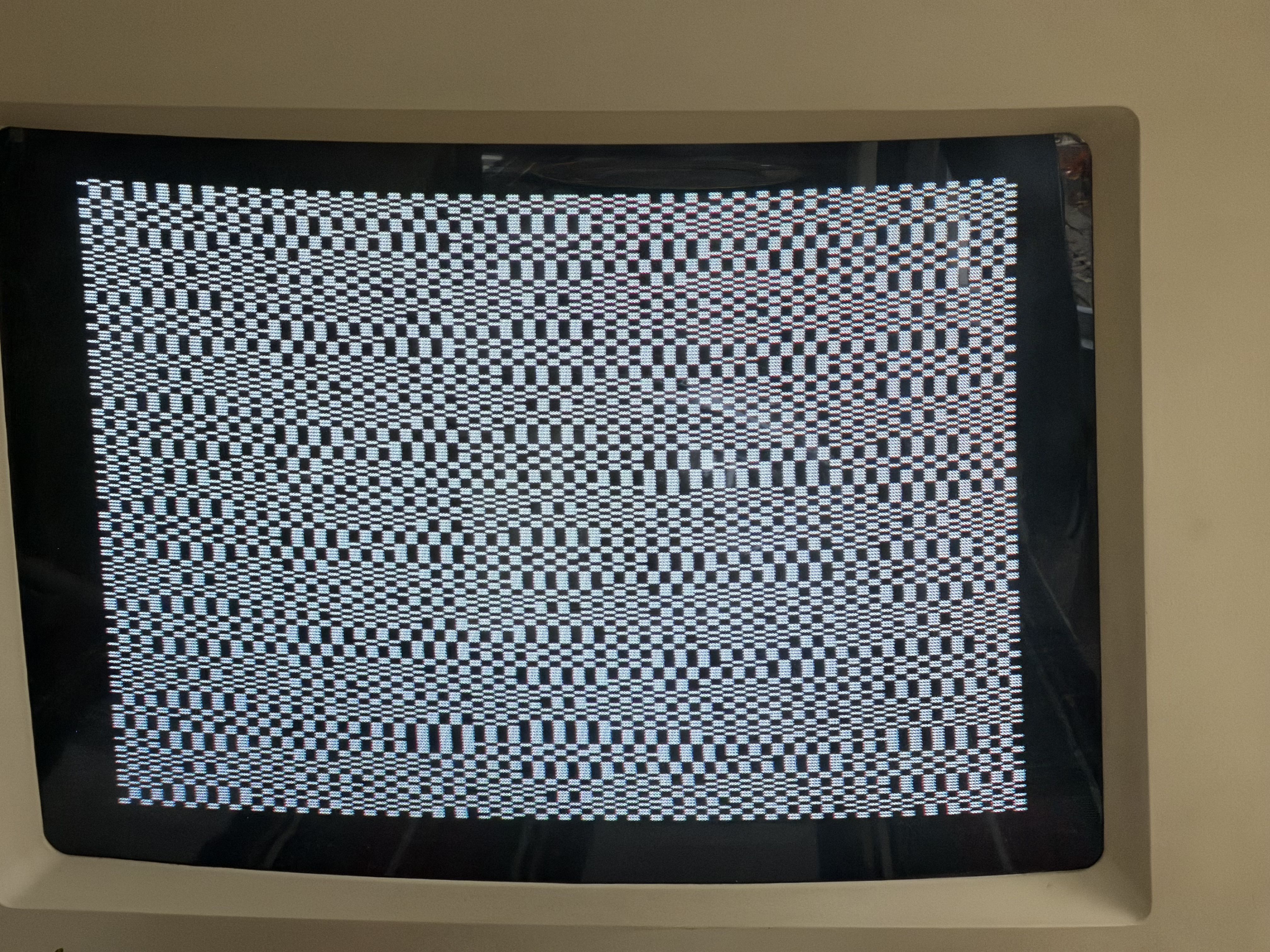 Now the bad news. While the seller showed a picture of it booting to a IIgs blue boot screen, I have not had any luck getting it to show anything but a weird black and white pattern on the screen.
