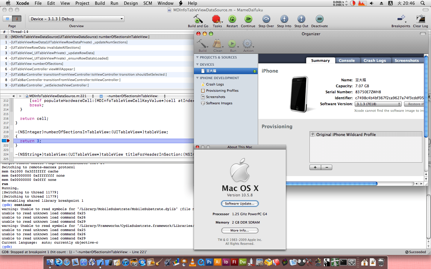 Hey everyone, since I got my iMac G4, I have wanted to get a retro iPhone development workstation setup. While PPC Macs were never supported for iPhone development, I did see tutorial online for how to force install it. Like the one on Macintosh Garden / Repository. However, those were only the iPhone OS 2.2.1 SDK and I could not deploy to device using those tutorials. So after much much fiddling with Xcode (I must have reinstalled Xcode like 20 times
