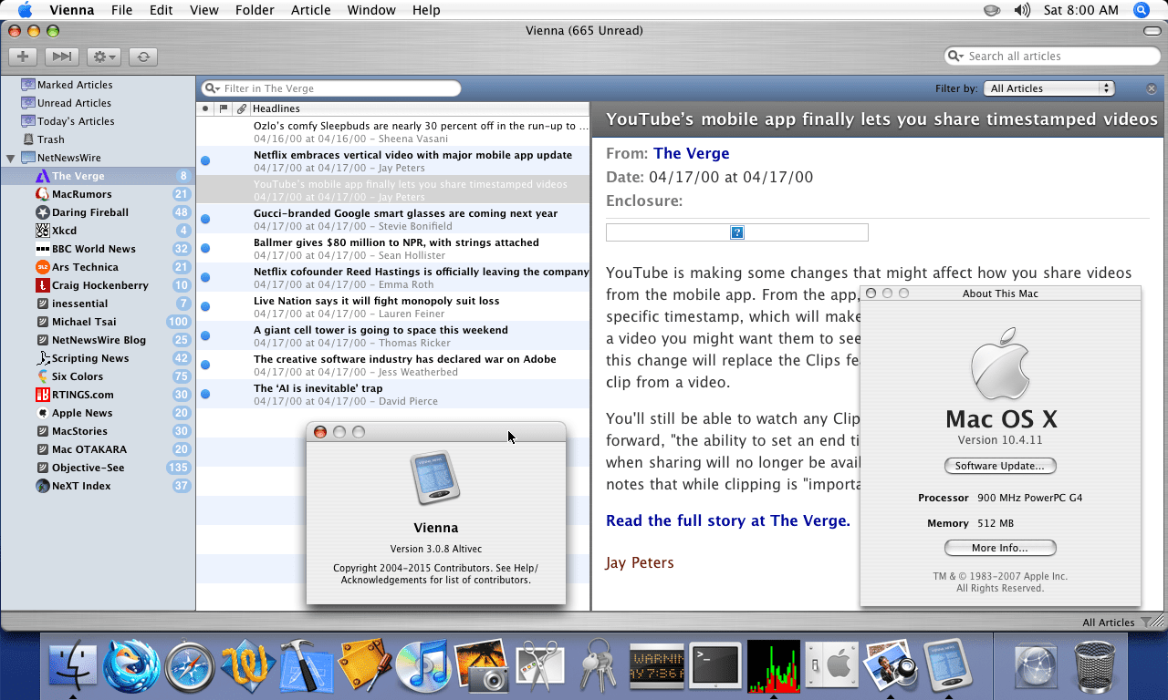 GitHub - jeffreybergier/Vienna-Altivec: A back port of Vienna RSS Reader for Tiger