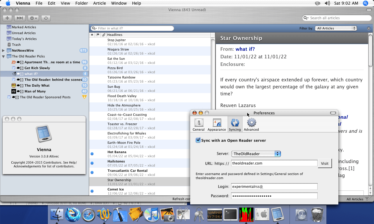 However, I could not find an RSS reader for Leopard or Tiger that syncs with The Old Reader... For example Vienna exists for Tiger and Leopard but that version does not sync with any services.